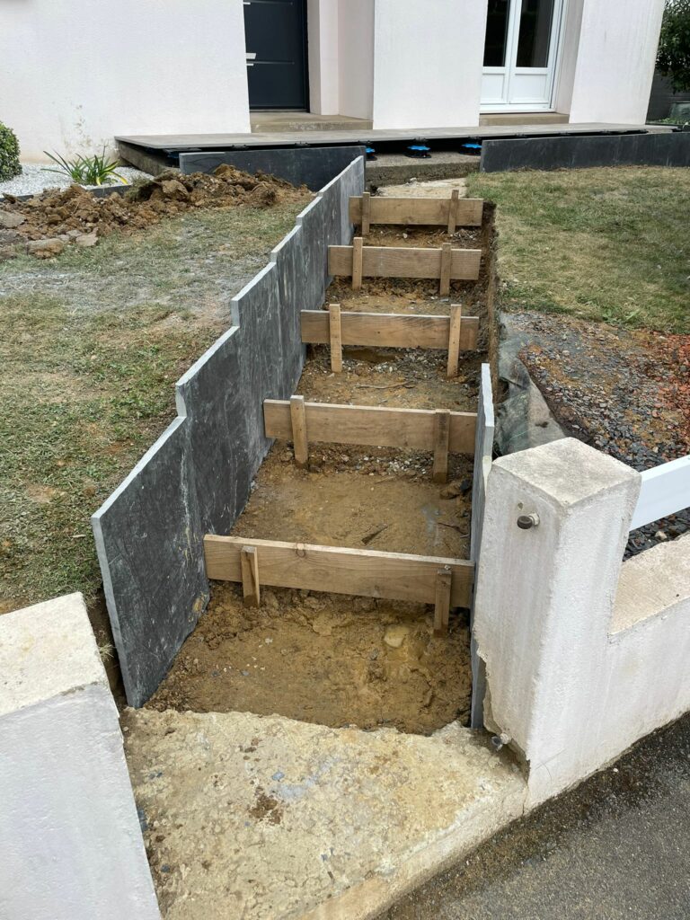 - Décaissement et nivellement pour créer l’escalier,